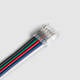 Conector para Tira LED orientado a RGBW con formato doble con cable y ancho de 10 mm. Diseñado para tiras SMD de 24 V con unión rápida y continuidad entre dos segmentos.