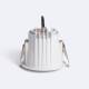 El cuerpo del downlight está fabricado en aluminio inyectado de alta densidad, lo que permite una disipación térmica óptima y una vida útil prolongada del conjunto LED. Incorpora a su vez un prensacables metálico estanco en la entrada del cableado al driver, un detalle normalmente reservado a productos de especificación superior. Este componente asegura la estanqueidad del conjunto grado de protección IP44 y garantiza el cumplimiento de las normativas eléctricas más exigentes en proyectos contract.