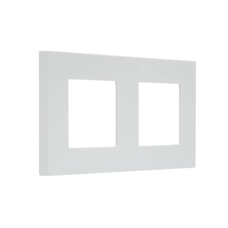 El diseño del Marco Modern de 2 módulos se caracteriza por sus líneas rectas y proporciones equilibradas, con un acabado liso y sin bordes pronunciados que aporta una estética minimalista y contemporánea. Está disponible en acabados blanco mate y negro satinado, permitiendo combinarlo con los distintos mecanismos de la serie para lograr configuraciones personalizadas y adaptadas al estilo del entorno.