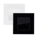 Este modelo incorpora de serie un marco de cristal templado Modern en acabado blanco o negro, formando un conjunto monoblock que se instala directamente sobre cajas universales de 86x86 mm. El cristal está tratado para resistir huellas, rayaduras y manchas, manteniendo una estética limpia y profesional en todo momento. La retroiluminación LED integrada permite localizar el punto de accionamiento incluso en completa oscuridad sin generar deslumbramiento, aportando funcionalidad y estética a partes iguales.