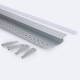 Solución orientada a integración arquitectónica: perfil de aluminio empotrable para escayola/pladur con instalación empotrada y compatibilidad para tira LED de hasta 12 mm. Incluye tapa superior para un acabado limpio en sistemas de cartón yeso.