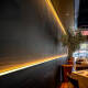 El montaje se realiza empotrando el perfil en el hueco practicado en escayola o pladur, asegurando la fijación del cuerpo antes de introducir la tira LED compatible con el ancho admitido. Tras el cableado y la comprobación funcional del sistema, se coloca la tapa superior para completar la terminación y preparar la fase de enlucido o pintura del paramento.