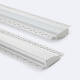 Gracias a su forma especial, este perfil está diseñado para rematar techos de pladur o escayola, creando una iluminación suave y difusa. Se integra a la perfección en la estructura del techo, proporcionando un acabado limpio y profesional sin elementos visibles.