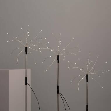 El Set de 3 Pinchos LED Exterior Solar Diente de Leon está compuesto por 3 lámparas en forma de diente de león o de fuegos artificiales. Presenta un diseño original que queda perfecto para decorar jardines, terrazas, celebraciones, etc.