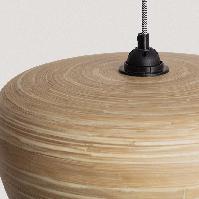 Esta lámpara está fabricada en bambú, un tipo de madera que presenta excelentes niveles de resistencia y flexibilidad. Podrás situar la Lámpara Colgante Shuka Sari en espacios tan variados como salones, comedores, dormitorios, restaurantes o locales comerciales.