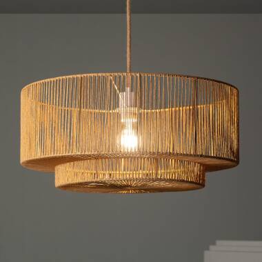 La Lámpara Colgante Papel Trenzado Dicenta Ø500 mm es una luminaria decorativa que destaca por su diseño cálido, natural y artesanal. Su forma doble de pantalla cilíndrica y su estructura de papel trenzado generan una luz tamizada y envolvente, perfecta para crear atmósferas acogedoras en salones, comedores o zonas de descanso. Ideal para ambientes boho, mediterráneos o escandinavos.