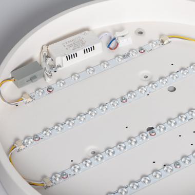 Este Plafón LED 30W Circular Metal Ø400 mm CCT Seleccionable Hidria está fabricado en metal, lo que nos proporciona una gran resistencia y disipación del calor. Dentro del plafón, al lado de los chips LED, encontramos el selector, que debemos situar en la temperatura de color deseada antes de cubrir con el difusor e instalar el plafón en su posición final.