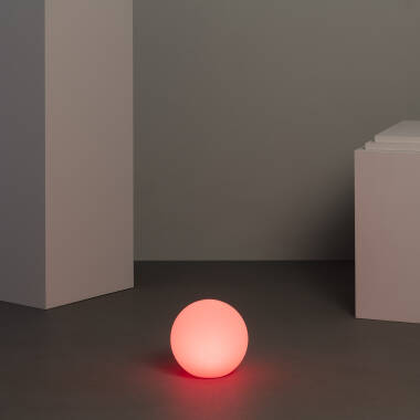 Mobiliario en forma de Esfera de 20 cm de diámetro, con luces LED RGBW y recargable. Su diseño agradable y sencillo hace de esta esfera una pieza de adorno ideal si se busca originalidad y distinción tanto en ambientes interiores como en exteriores.