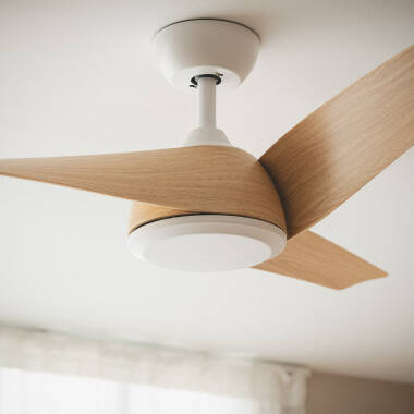 El Ventilador de Techo Silencioso Eubea 132 cm con Motor DC combina eficiencia energética, diseño contemporáneo y un funcionamiento ultrasilencioso. Su estructura estilizada en acabado blanco y sus palas aerodinámicas lo convierten en una pieza decorativa y funcional, ideal para climatizar estancias de más de 20 m² con elegancia y confort.
