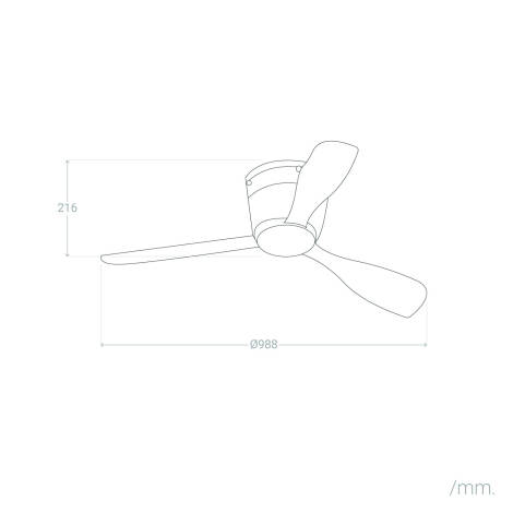 El cuerpo del ventilador está fabricado en acero y policarbonato, sus 3 aspas en policarbonato y su difusor de cristal opal, una combinación que aporta ligereza, robustez y versatilidad. Cuenta con un cómodo control por mando para poder elegir entre sus distintas 5 velocidades. Además, como es típico de nuestros productos, utiliza LEDs, consiguiendo un gran ahorro energético respecto a las luminarias convencionales. La temperatura de color de la luz utilizada es Blanco Cálido.