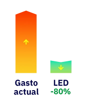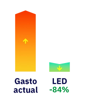 La elevada eficiencia del LED respecto a tecnologías convencionales nos permite ahorrar casi un 80%, unos 135,50€ al mes (precio actual de 0,25€ el kWh), en el consumo de la iluminación.
