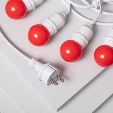 Este kit consiste numa Grinalda impermeável IP65 de 5,5m de comprimento e 8 Lâmpadas LED E27 G45 3W. É um elemento amplamente utilizado na iluminação decorativa de espaços exteriores. A grinalda tem conectores nas extremidades que podem ser utilizados tanto para alimentação eléctrica como para unir grinaldas em série. Podem ser unidas até 6 grinaldas para formar uma corrente de 30 metros de comprimento e 48 lâmpadas. Entre cada lâmpada há um comprimento de 60 cm.