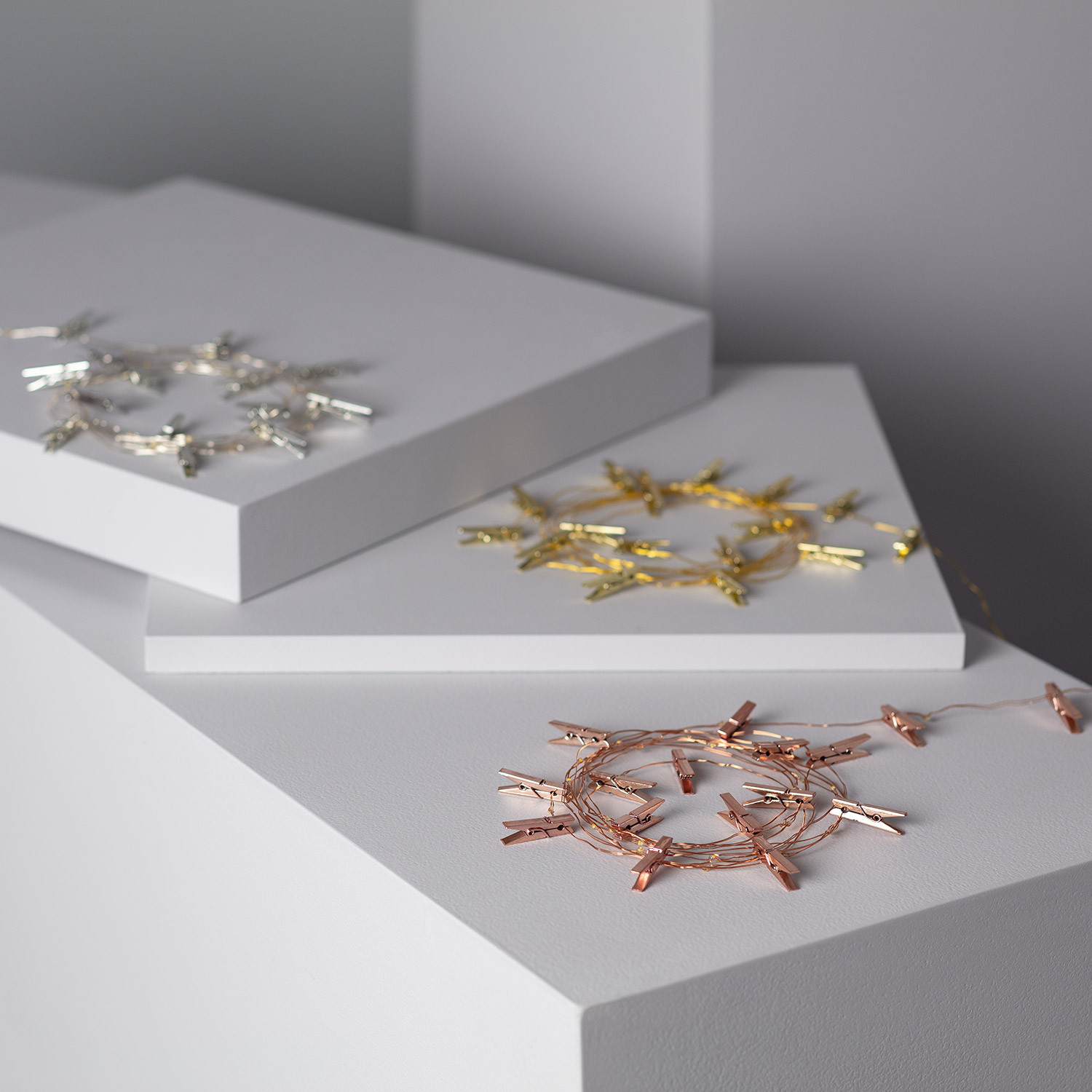 De entre as várias opções à escolha, temos as grinaldas de arame a pilhas, com molas para fotografias, com motivos de Natal e outras formas muito originais.