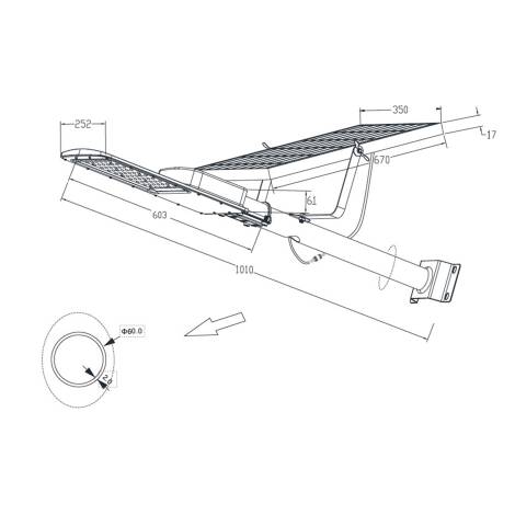 A luminária LED Serbal para iluminação pública oferece uma luminosidade de 2400 lm com uma eficiência de 120 lm/W. Esta luminária foi projetada para ser alimentada por energia solar, o que a torna ideal para áreas com exposição solar limitada ou onde se busca reduzir o consumo energético.