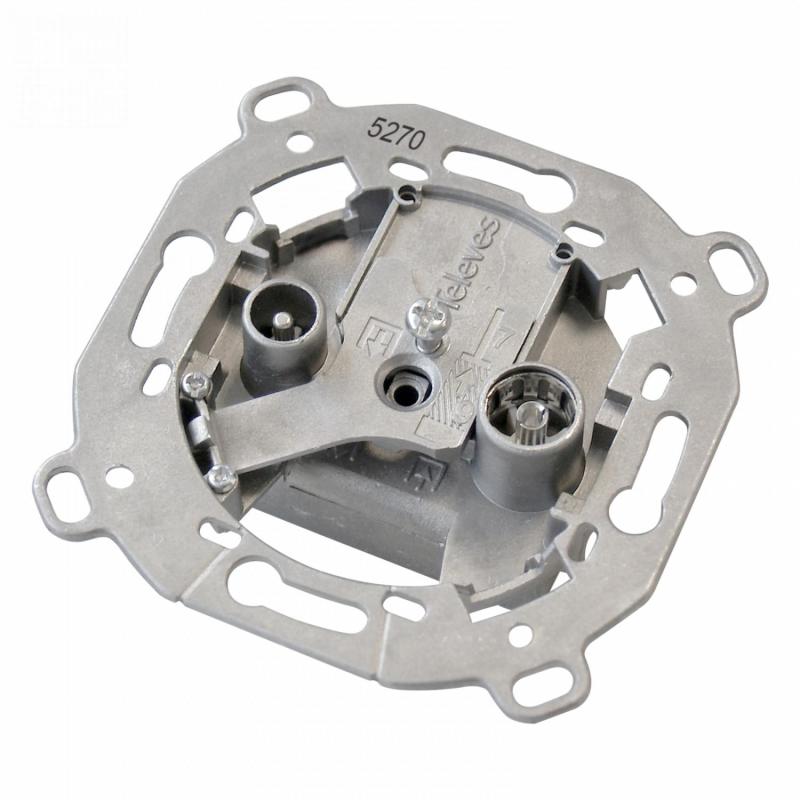 A Tomada de Passagem Ponteada TELEVES fornece duas ligações para TV e Satélite, está ligada em ponte, o que significa que ou o conector fornece um sinal para TV, Satélite ou rádio.