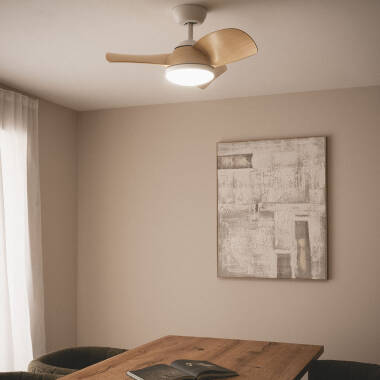 Este ventilador integra um motor DC de 35W que garante maior eficiência, menor ruído e maior durabilidade em comparação com os motores AC. A sua estrutura leve permite um funcionamento sem vibrações e oscilações, mesmo à velocidade máxima. Oferece 6 níveis de velocidade, arranque rápido e paragem suave, que podem ser controlados por controlo remoto ou aplicação móvel, dependendo da configuração escolhida. Incorpora também tecnologia LED CCT de 18W, que permite selecionar três temperaturas de cor: quente (2700-3500K), neutra (4000-4500K) e fria (5000-6500K), adaptando a iluminação a cada momento sem afetar o fluxo luminoso total.