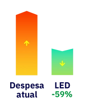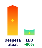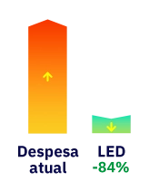 A elevada eficiência dos LEDs em comparação com as tecnologias convencionais permite-nos poupar quase 80%, cerca de 75,86€ por mês (preço actual de 0.14€ por kWh), no consumo de iluminação.