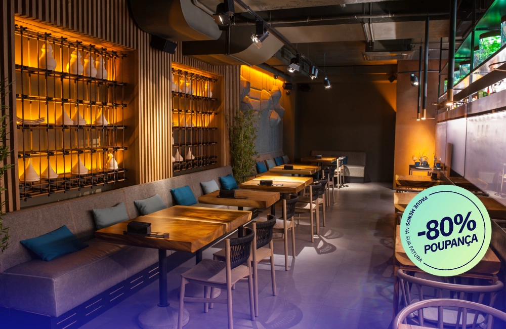 Em cada restaurante, o tipo e a quantidade de luzes instaladas podem variar de acordo com o estilo e a atmosfera que se pretende criar. Tomemos por exemplo um restaurante com 20 mesas e iluminação directa sobre as mesas.
