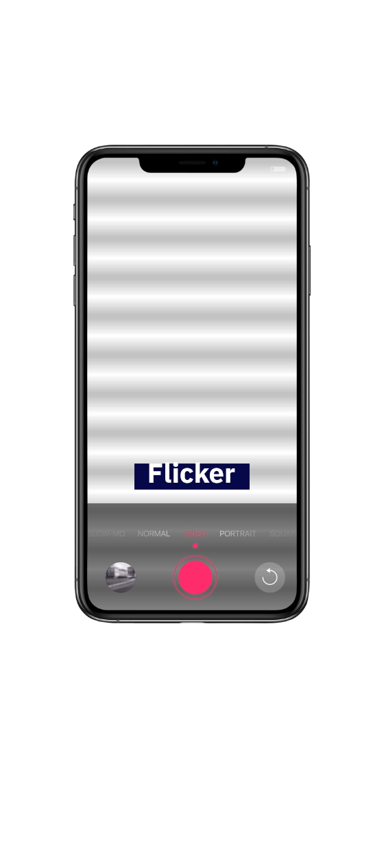 Uma forma de identificar o flicker é gravar o candeeiro ou lâmpada em questão com o seu telemóvel. Se mover o seu mouse para cima do telemóvel na imagem abaixo, verá um padrão familiar. Este é o efeito Flicker.
